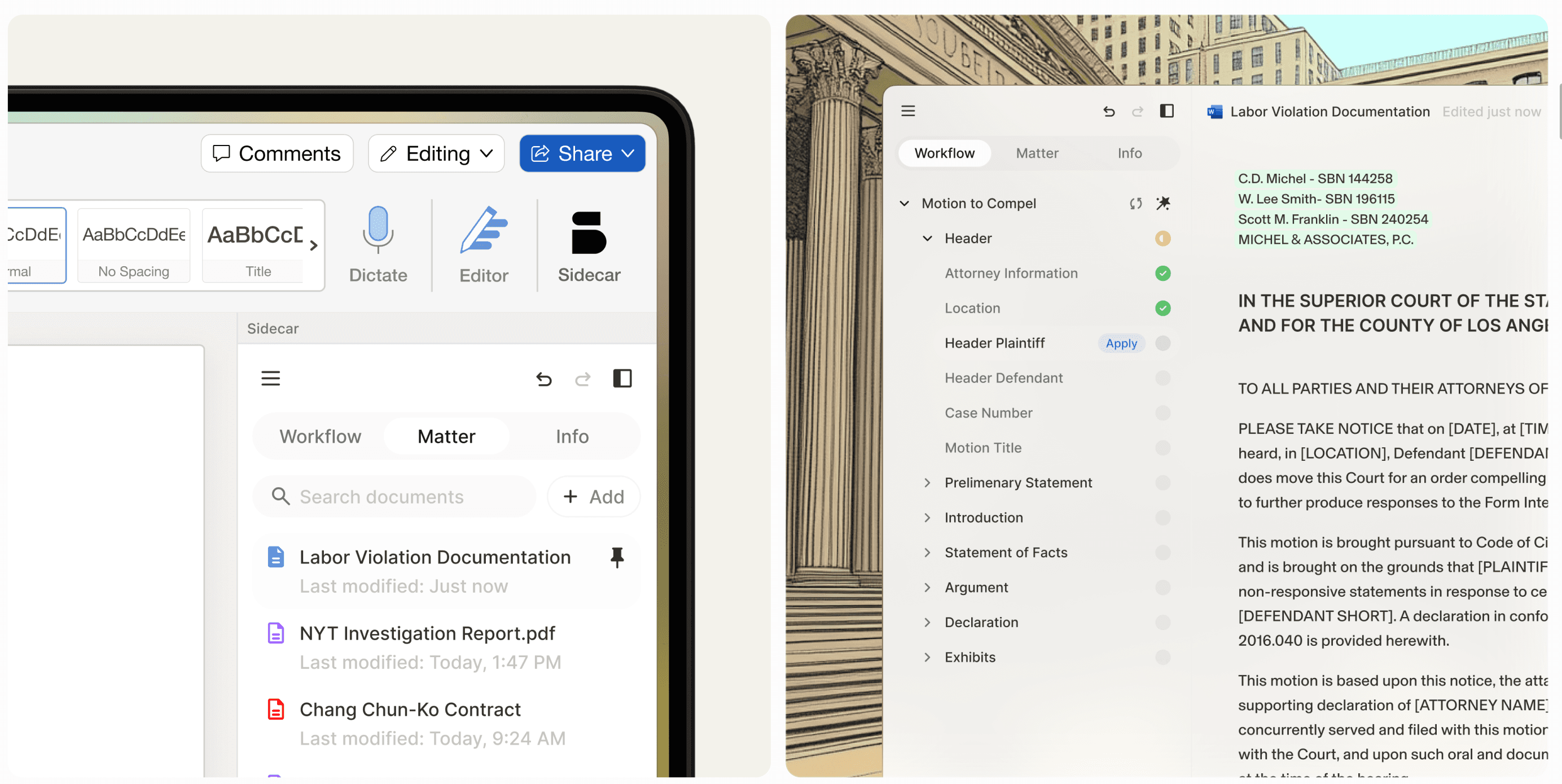 Sidecar Legal uses case file automation to reclaim the thousands of hours lost on administrative grunt work, without compressing billable hours.